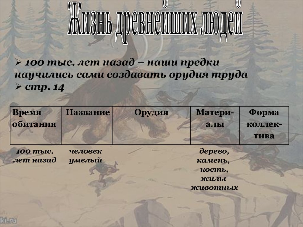 100 тыс. лет назад – наши предкинаучились сами создавать орудия труда