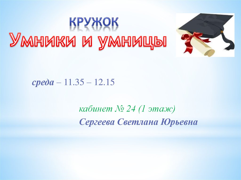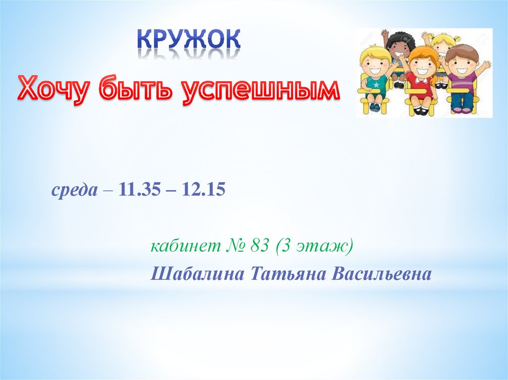 среда – 11.35 – 12.15кабинет № 24 (1 этаж)