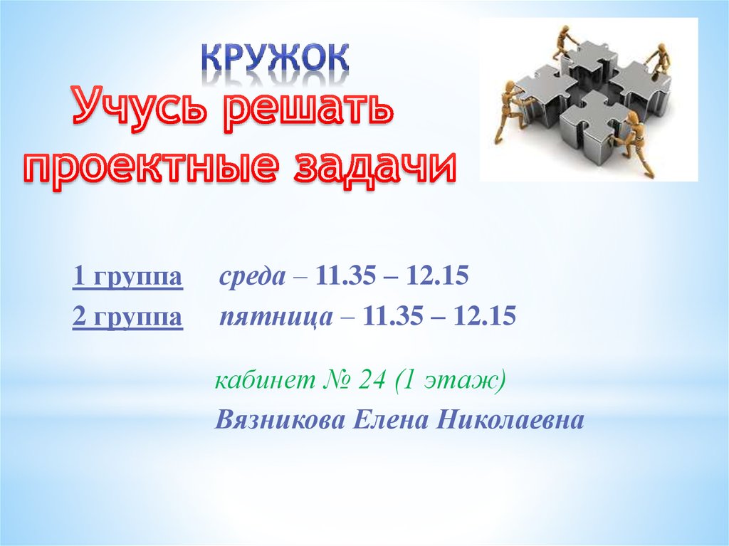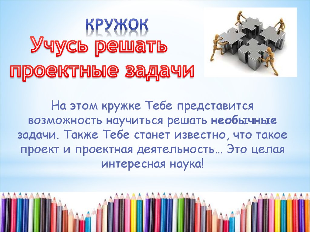 На этом кружке Тебе представитсявозможность научиться решать необычные