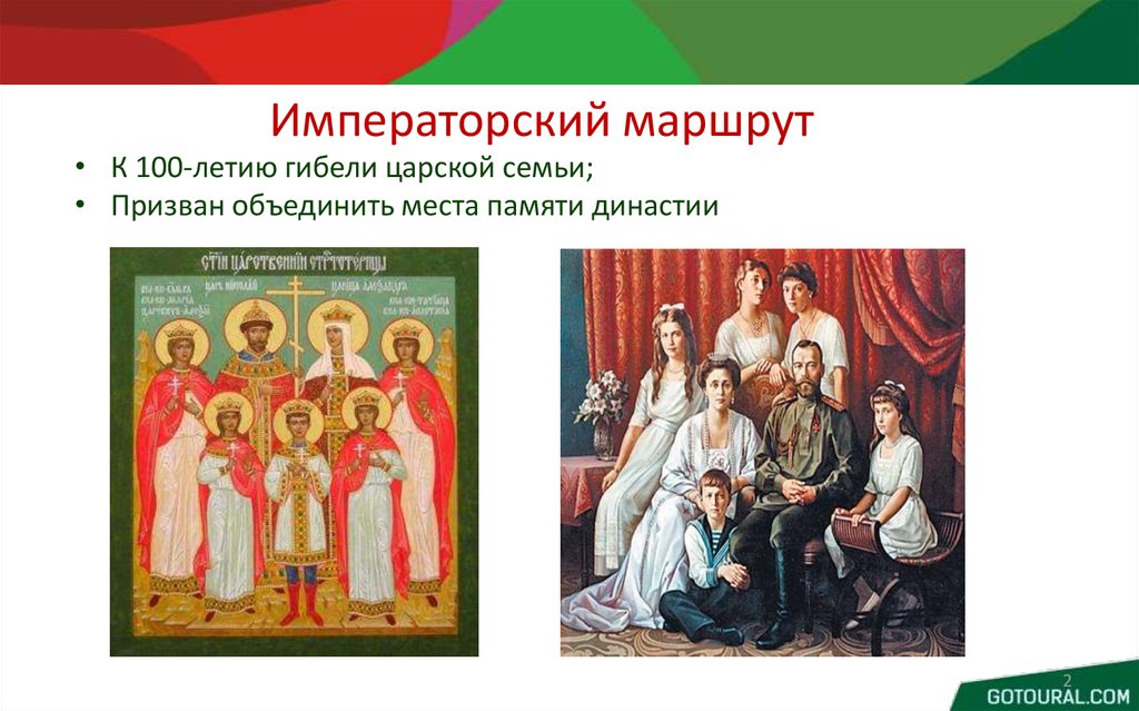 Императорский маршрут• К 100-летию гибели царской семьи;