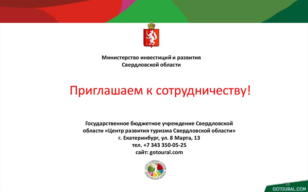 развития туризма Свердловской области»