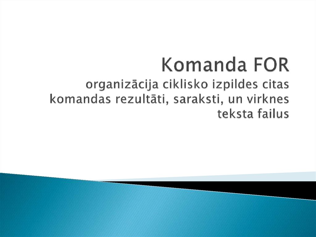 1. Komanda FOR organizācija ciklisko izpildes citas komandas rezultāti, saraksti, un virknes teksta failus