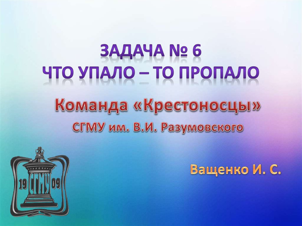 1. Задача № 6 Что упало – то пропало