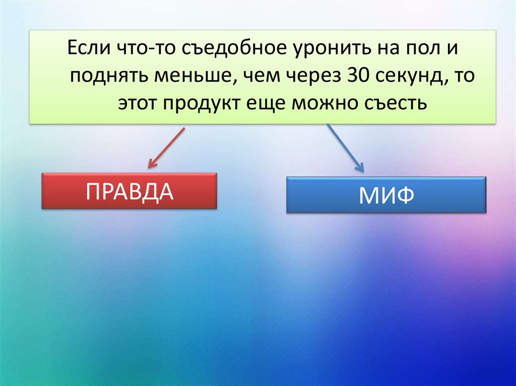 Если что-то съедобное уронить на пол иподнять меньше, чем через 30 секунд, то