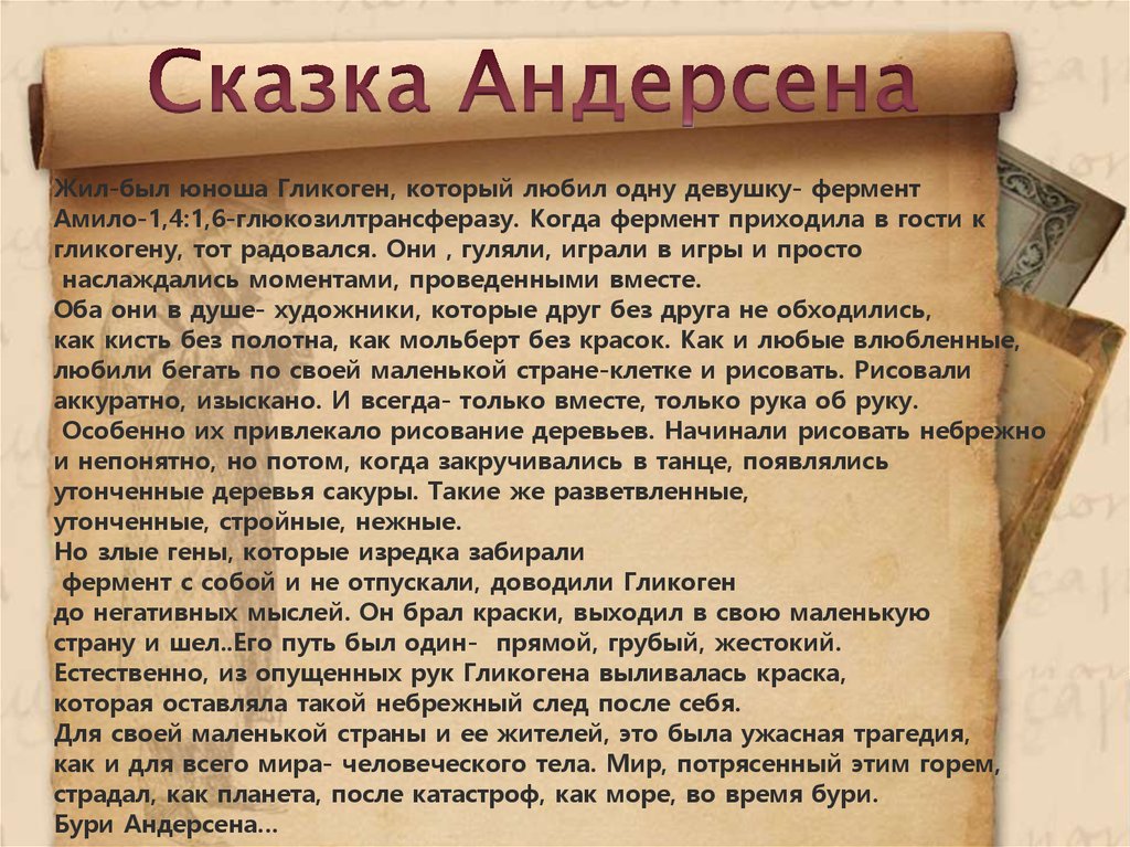 Жил-был юноша Гликоген, который любил одну девушку- ферментАмило-1,4:1,6-глюкозилтрансферазу. Когда фермент приходила в гости к