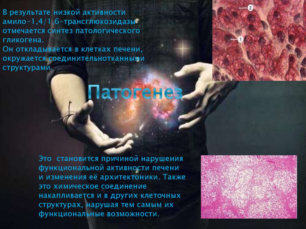 В результате низкой активностиамило-1,4/1,6-трансглюкозидазы
