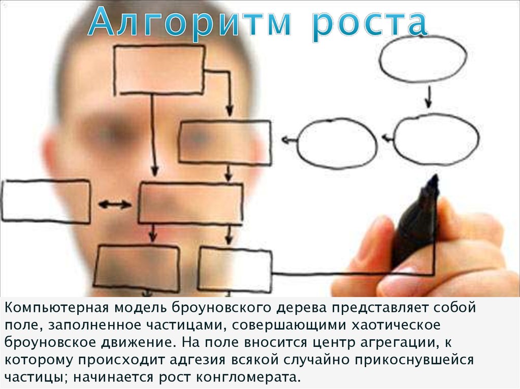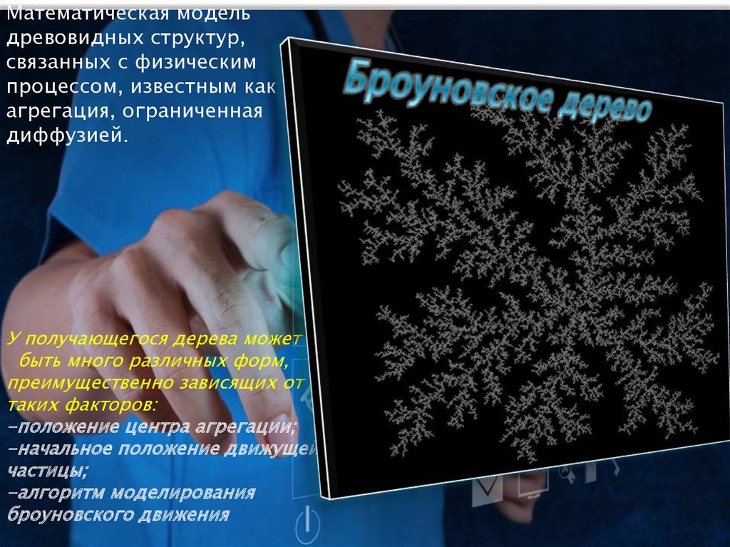 Компьютерная модель броуновского дерева представляет собойполе, заполненное частицами, совершающими хаотическое