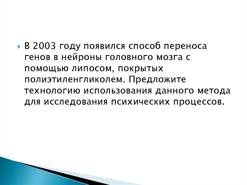 В 2003 году появился способ переносагенов в нейроны головного мозга с