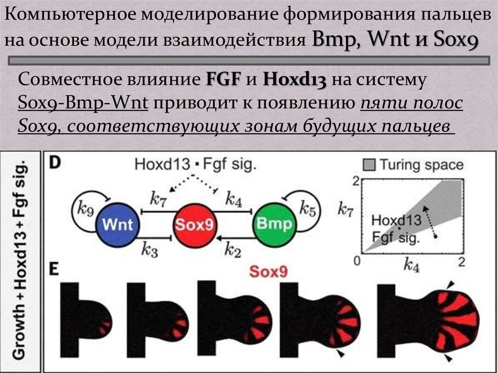Wnt, Bmp, Sox9, FGF, Hoxd13, обеспечивающей непрерывные волны