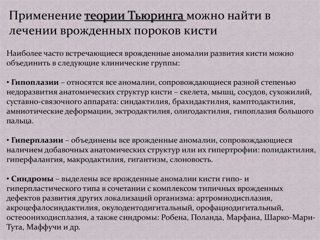 Применение теории Тьюринга можно найти влечении врожденных пороков кисти