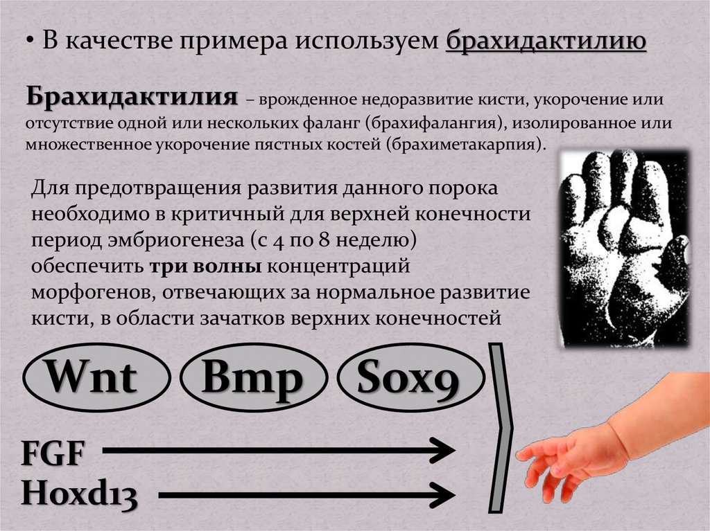 • В качестве примера используем брахидактилиюБрахидактилия – врожденное недоразвитие кисти, укорочение или