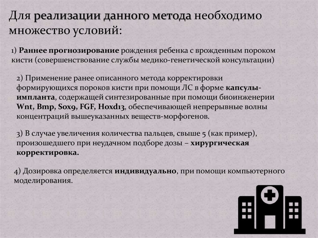 формирующихся пороков кисти при помощи ЛС в форме капсулыимпланта, содержащей синтезированные при помощи биоинженерии