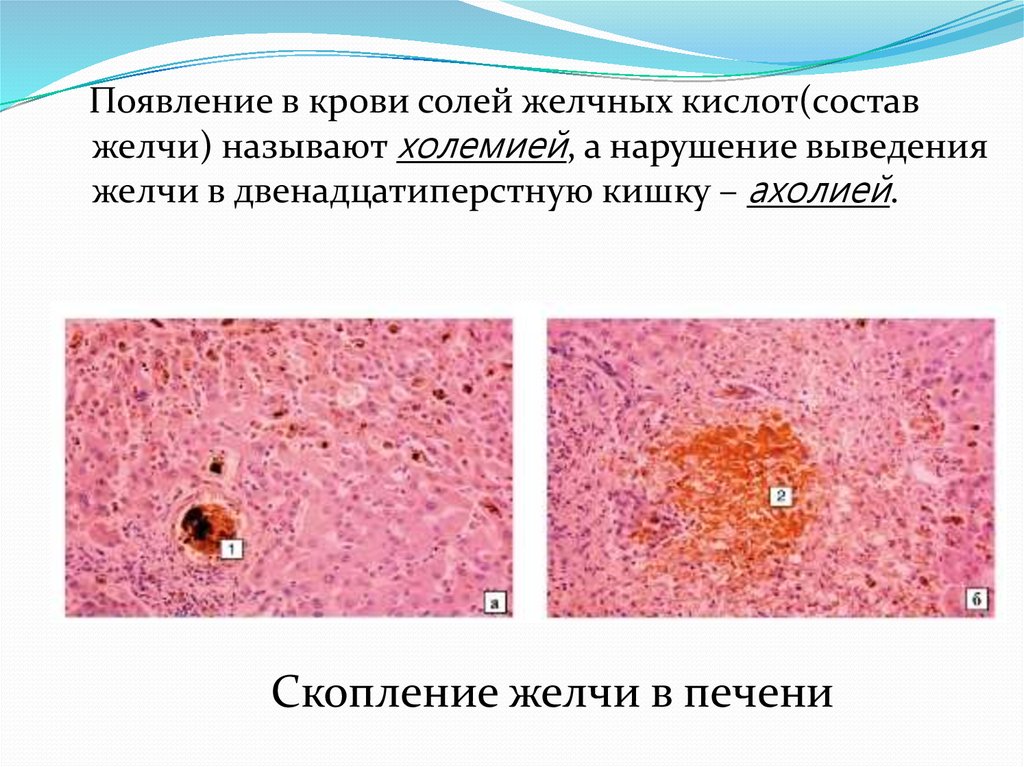 Появление в крови солей желчных кислот(составжелчи) называют холемией, а нарушение выведения
