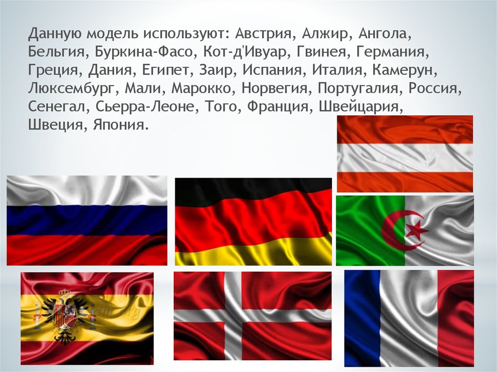 Данную модель используют: Австрия, Алжир, Ангола,Бельгия, Буркина-Фасо, Кот-д'Ивуар, Гвинея, Германия,