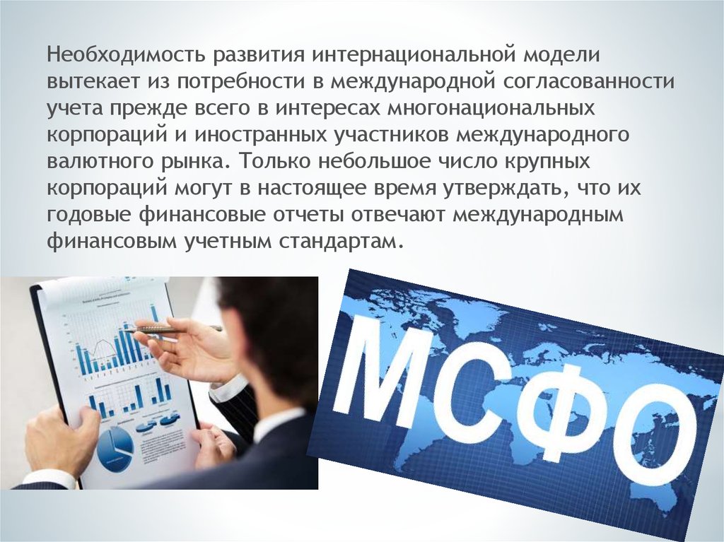 Необходимость развития интернациональной моделивытекает из потребности в международной согласованности