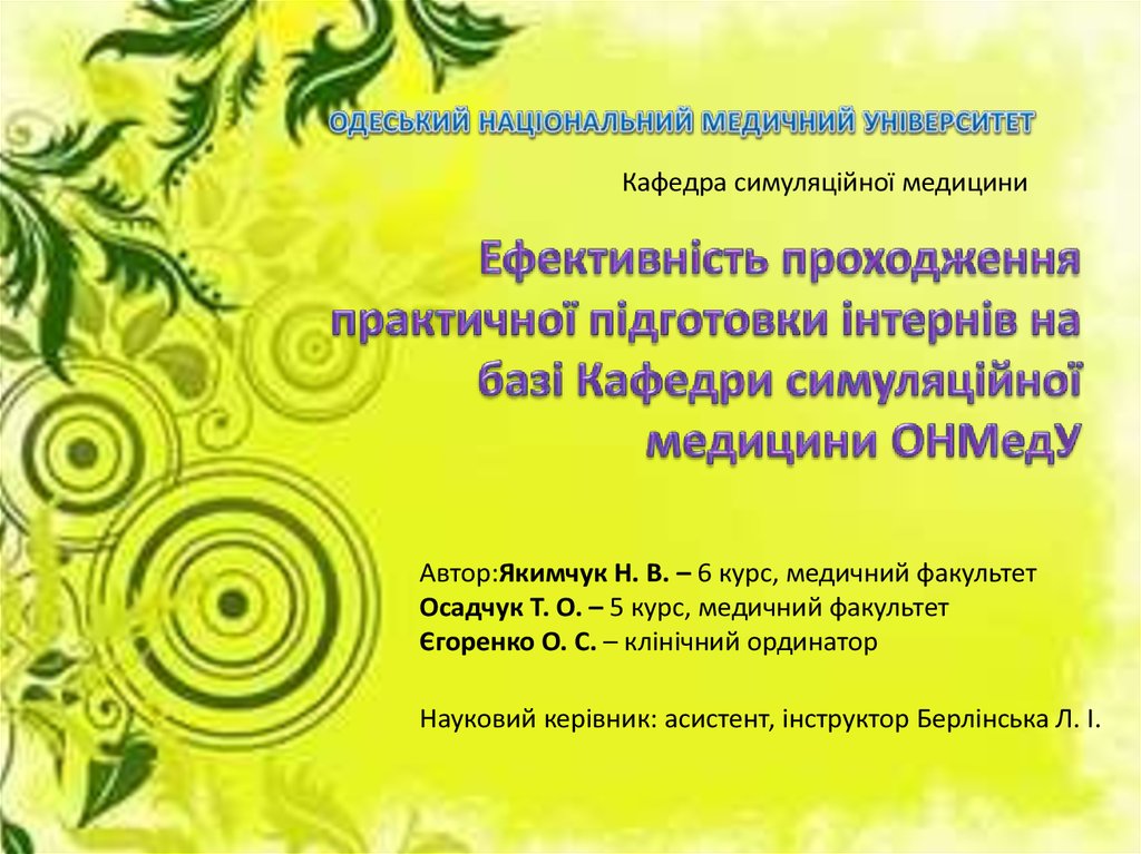 Кафедра симуляційної медициниАвтор:Якимчук Н. В. – 6 курс, медичний факультет