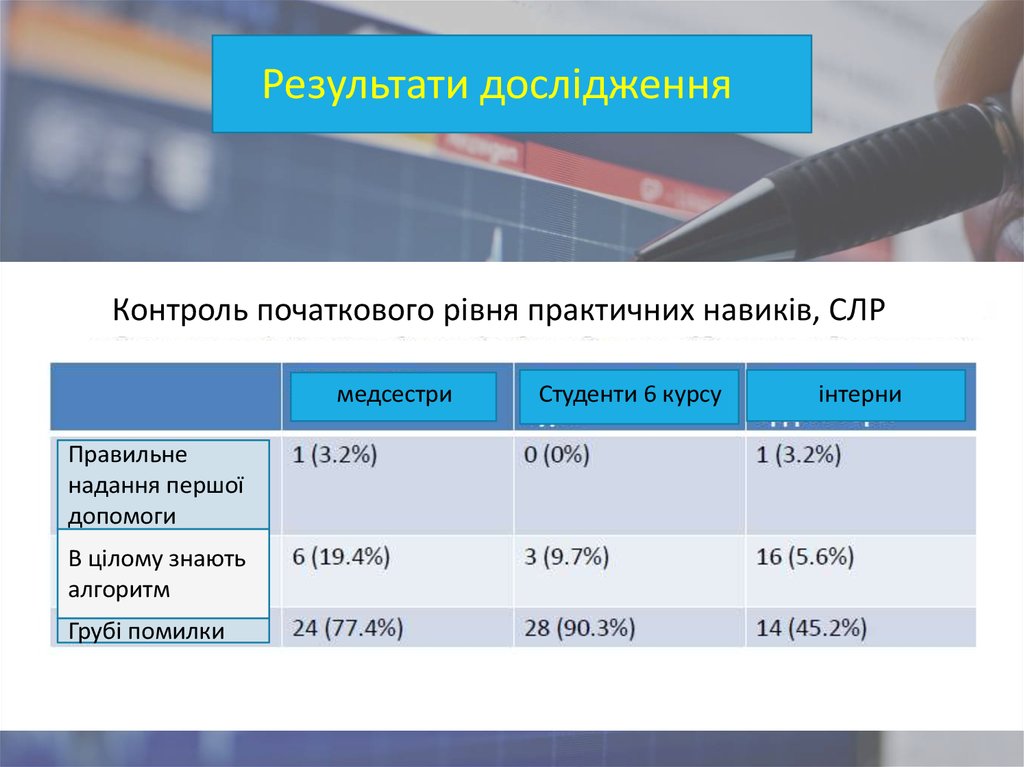 Результати дослідженняКонтроль початкового рівня практичних навиків, СЛР