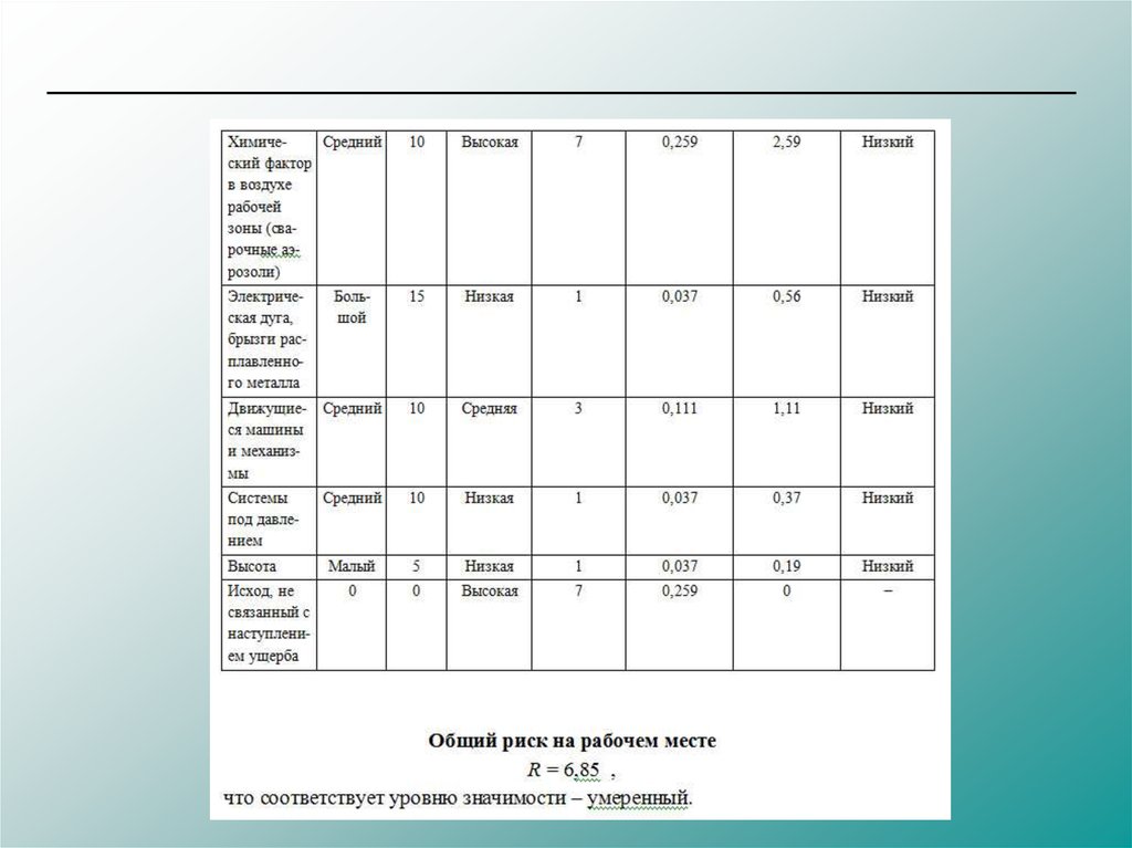 Отнесение условий труда на рабочих местах к классам (подклассам) условий