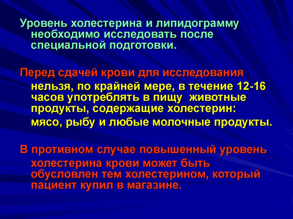 Уровень холестерина и липидограммунеобходимо исследовать после
