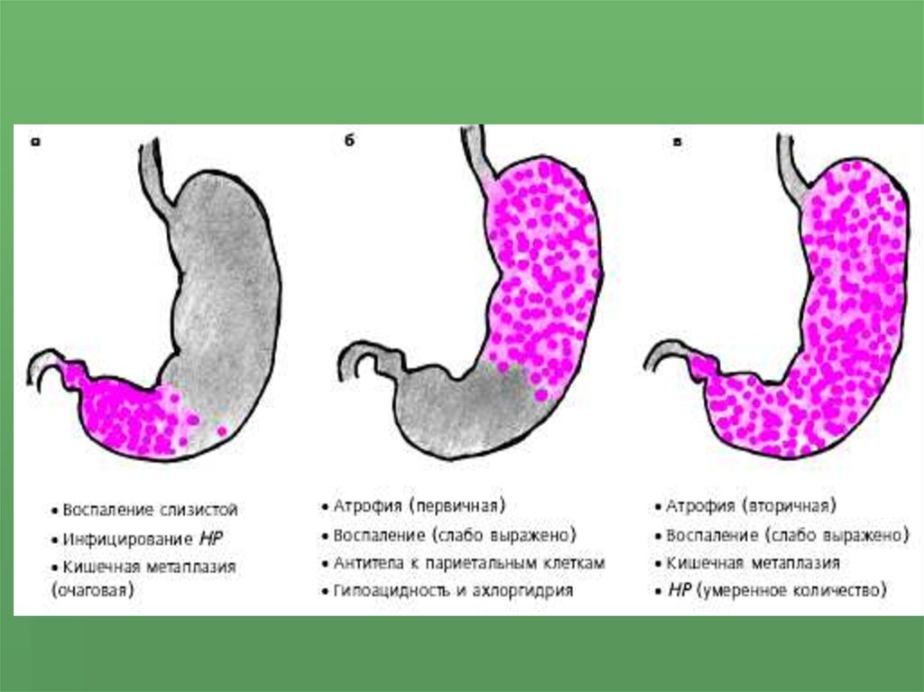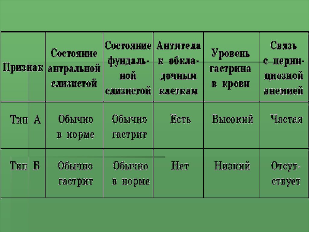 ХГ тип В (85%) – ассоциированный с HpХГ тип А (9%) – атрофический (в т.ч. и