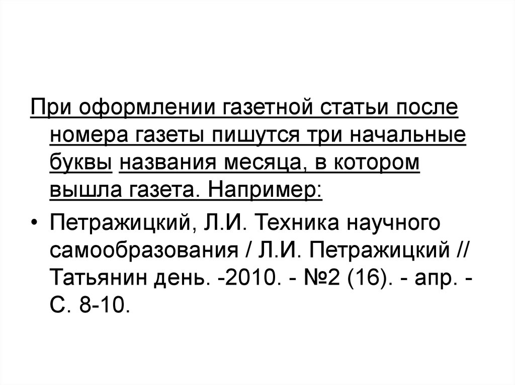 При оформлении газетной статьи посленомера газеты пишутся три начальные