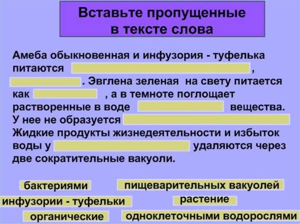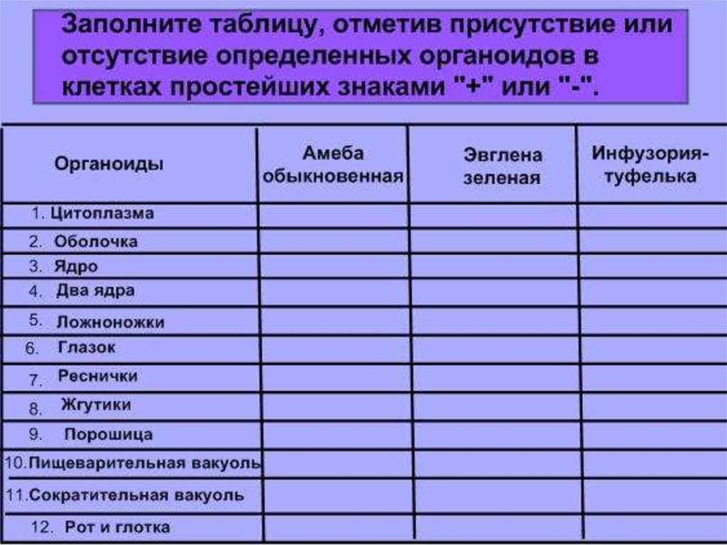 Простейшие. Сравнительная характеристика простейших