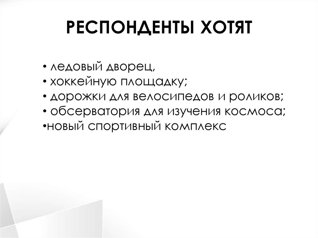 РЕСПОНДЕНТЫ ХОТЯТ• ледовый дворец,