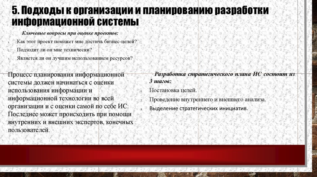 5. Подходы к организации и планированию разработкиинформационной системы