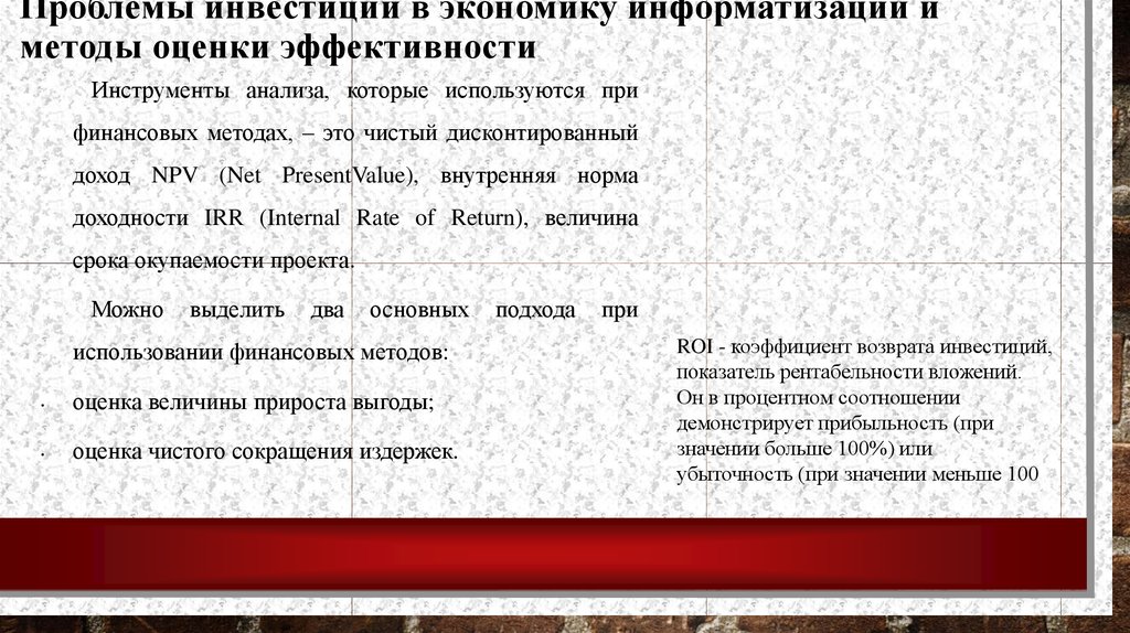 Проблемы инвестиций в экономику информатизации иметоды оценки эффективности