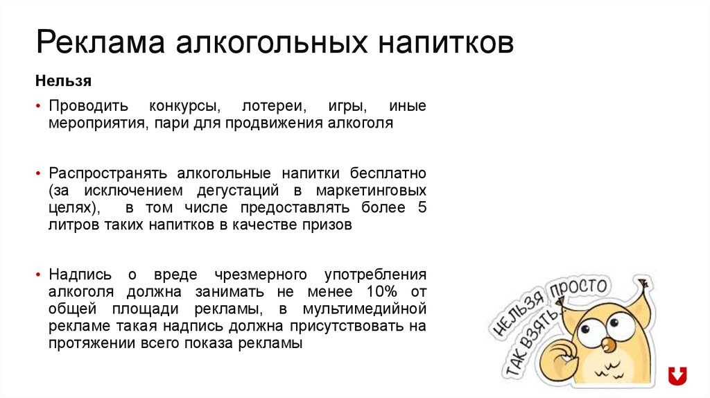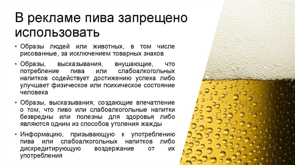 реклама алкоголя, а также при проведении гуманитарных
