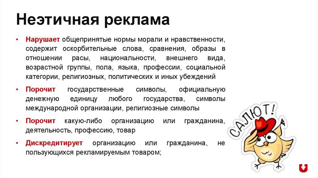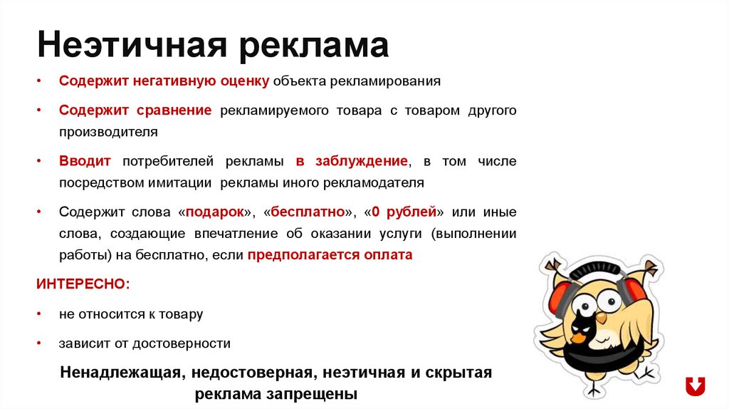 Неэтичная рекламаСодержит негативную оценку объекта рекламирования