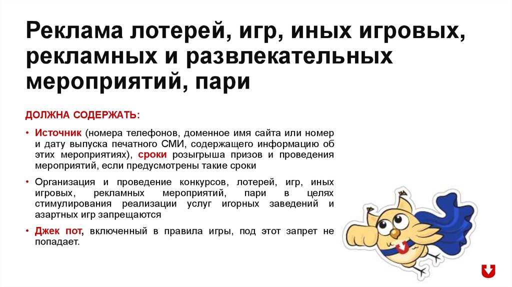 Реклама лотерей, игр, иных игровых,рекламных и развлекательных