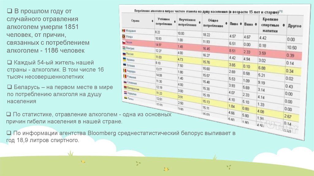 по потреблению алкоголя на душу