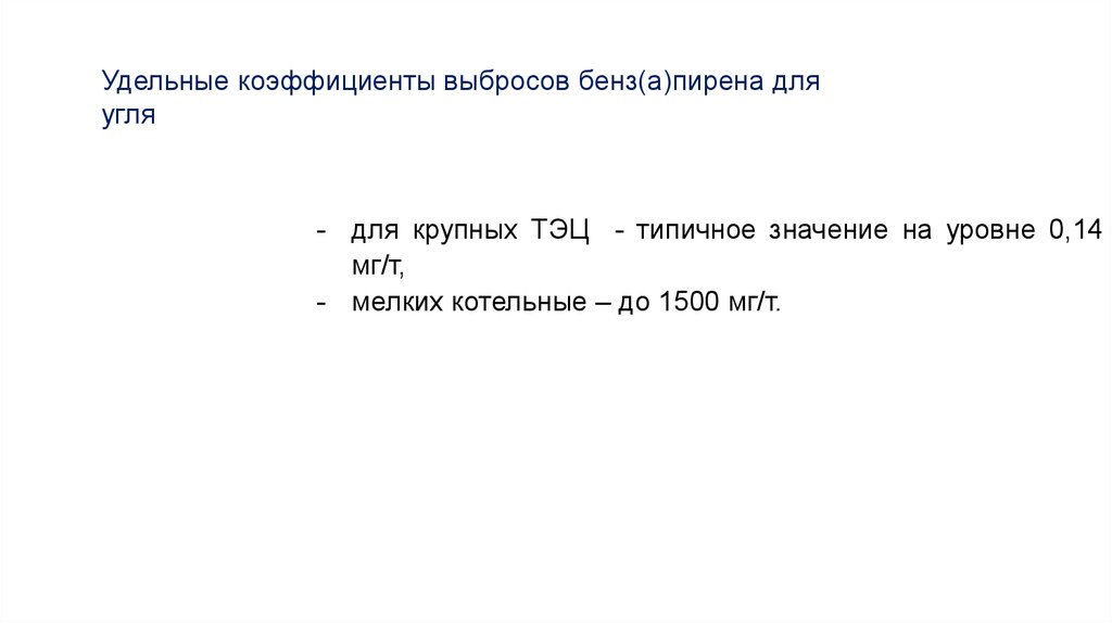 Удельные коэффициенты выбросов бенз(а)пирена дляугля