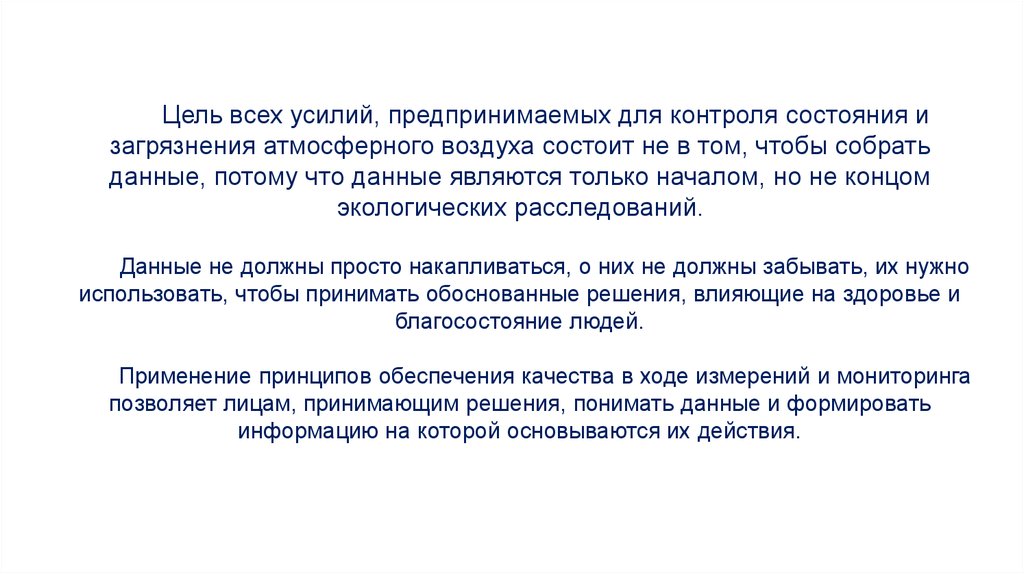 Цель всех усилий, предпринимаемых для контроля состояния изагрязнения атмосферного воздуха состоит не в том, чтобы собрать