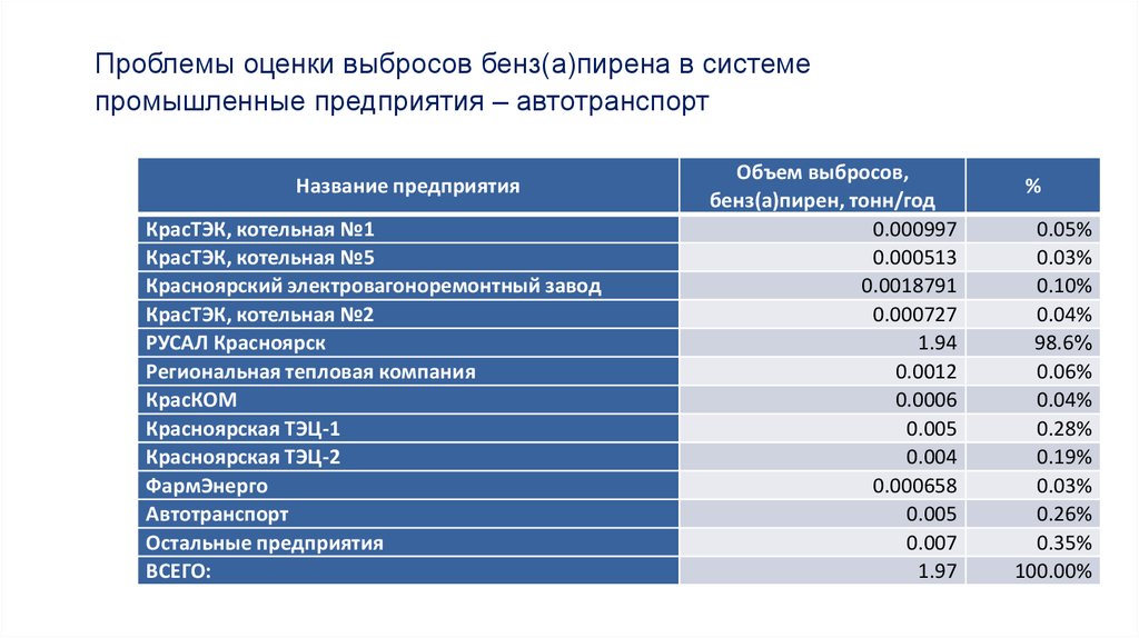 Проблемы оценки выбросов бенз(а)пирена в системепромышленные предприятия – автотранспорт