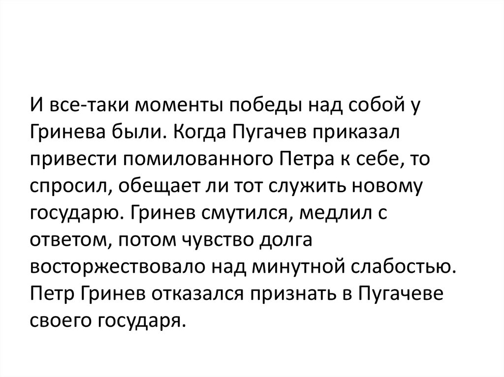 И все-таки моменты победы над собой уГринева были. Когда Пугачев приказал