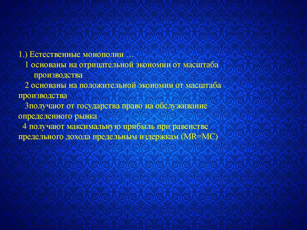 1.) Естественные монополии …1 основаны на отрицательной экономии от масштаба