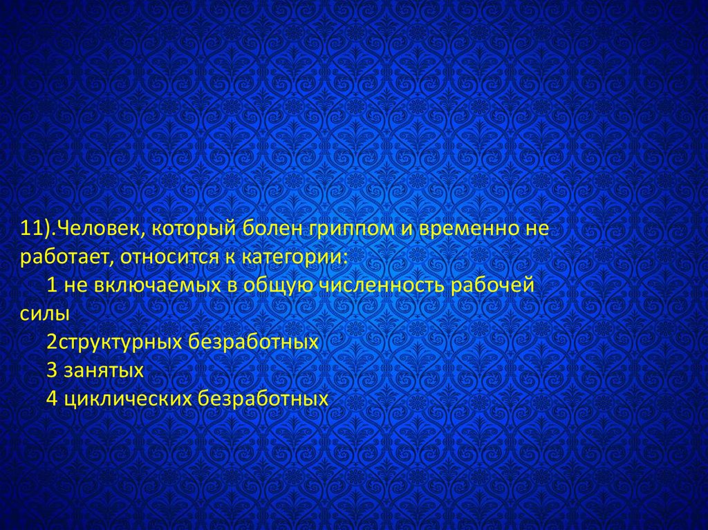 11).Человек, который болен гриппом и временно неработает, относится к категории: