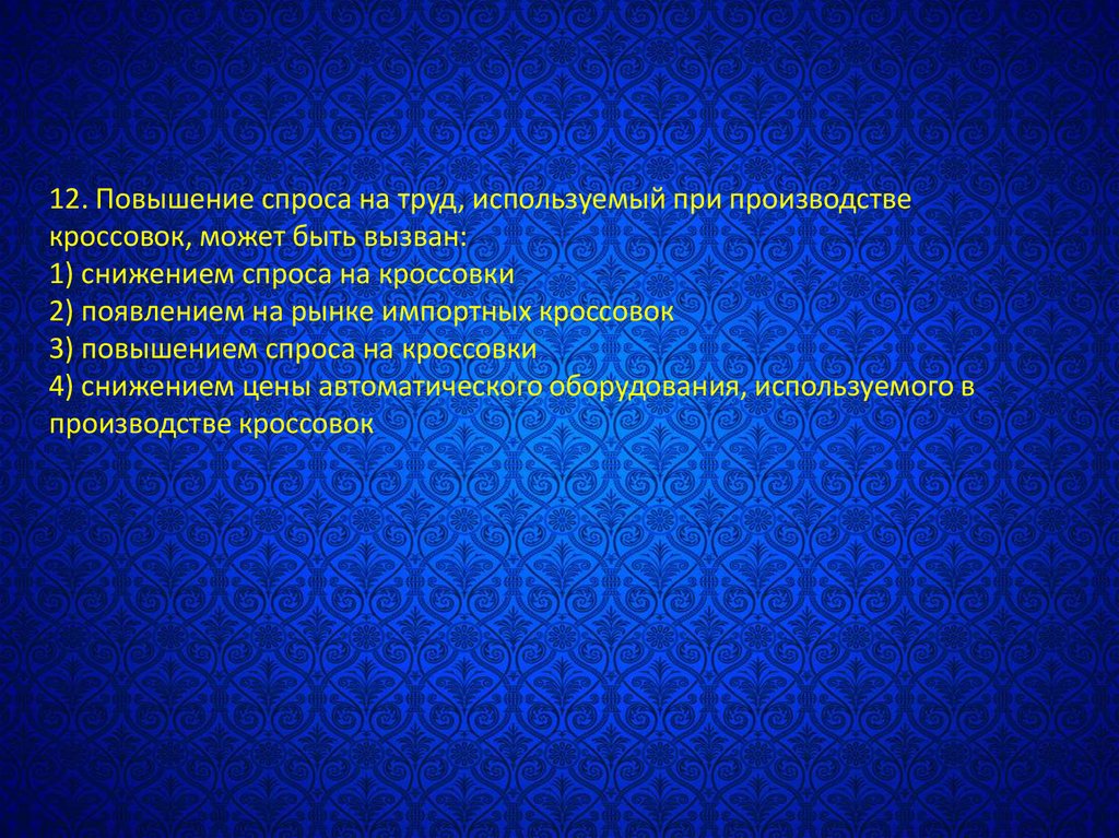 12. Повышение спроса на труд, используемый при производствекроссовок, может быть вызван:
