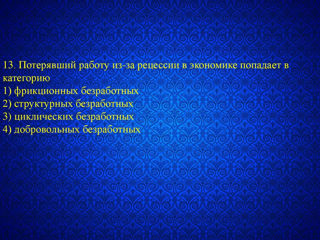 13. Потерявший работу из-за рецессии в экономике попадает вкатегорию