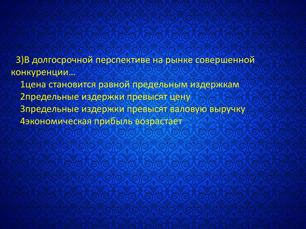 . 3)В долгосрочной перспективе на рынке совершеннойконкуренции…