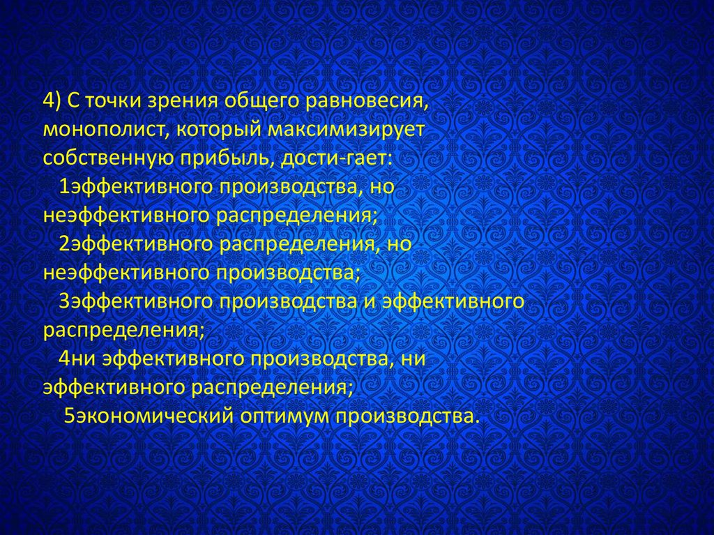 4) С точки зрения общего равновесия,монополист, который максимизирует