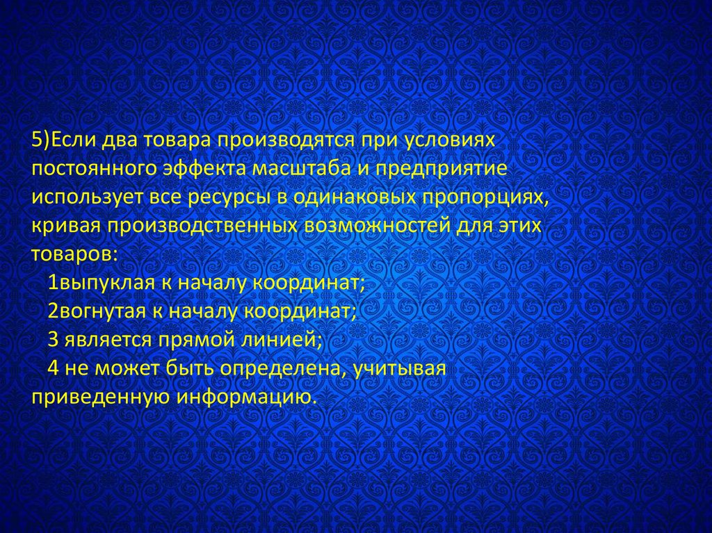 5)Если два товара производятся при условияхпостоянного эффекта масштаба и предприятие