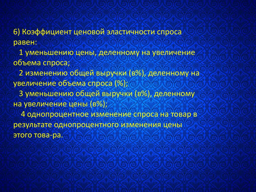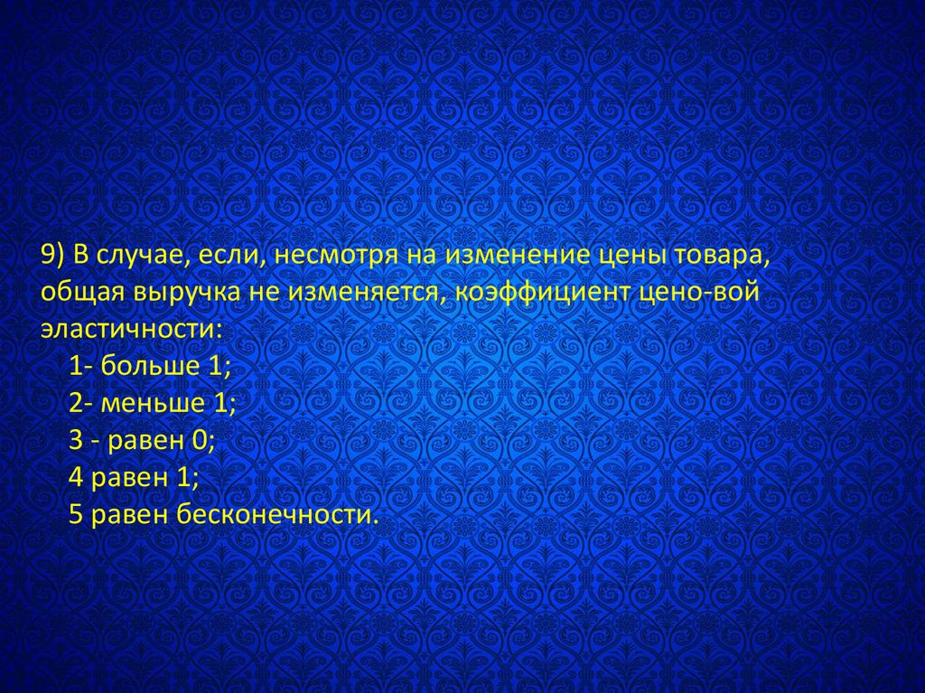 9) В случае, если, несмотря на изменение цены товара,общая выручка не изменяется, коэффициент цено-вой