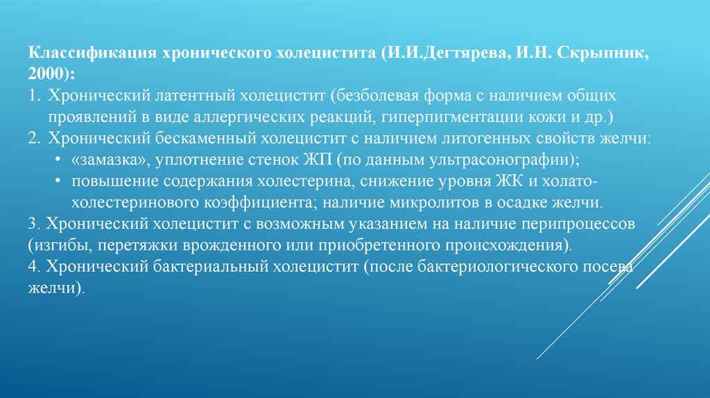 Классификация хронического холецистита (И.И.Дегтярева, И.Н. Скрыпник,2000):