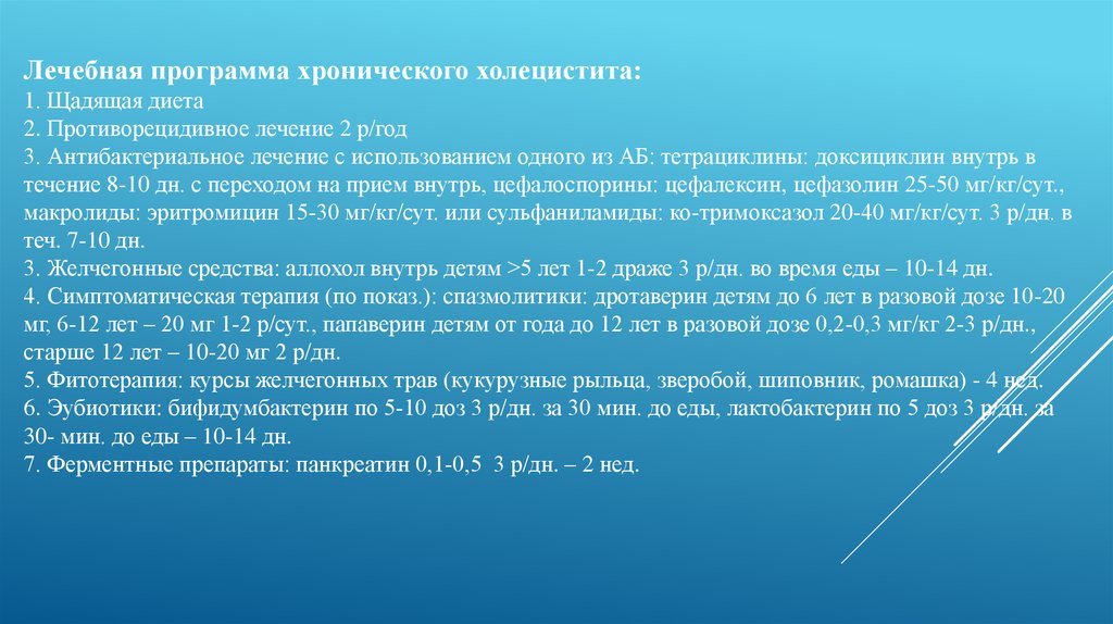 Лечебная программа хронического холецистита:1. Щадящая диета