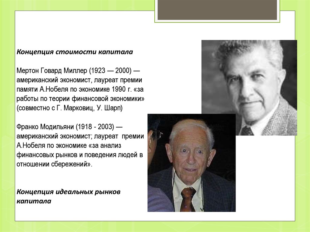 Концепция стоимости капиталаМертон Говард Миллер (1923 — 2000) —