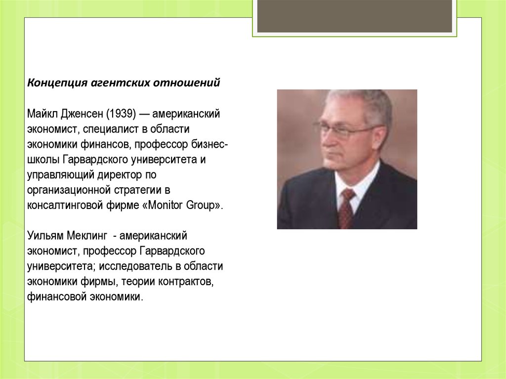 Концепция агентских отношенийМайкл Дженсен (1939) — американский