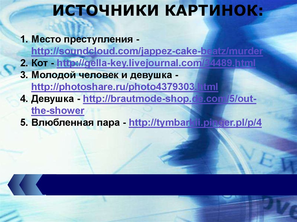 ИСТОЧНИКИ КАРТИНОК:1. Место преступления http://soundcloud.com/jappez-cake-beatz/murder